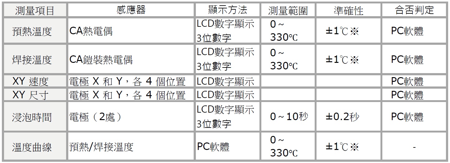 ●自動偵測預熱/焊接溫度、XY速度、XY噴嘴焊錫尺寸等,可輕鬆管理設備狀態。