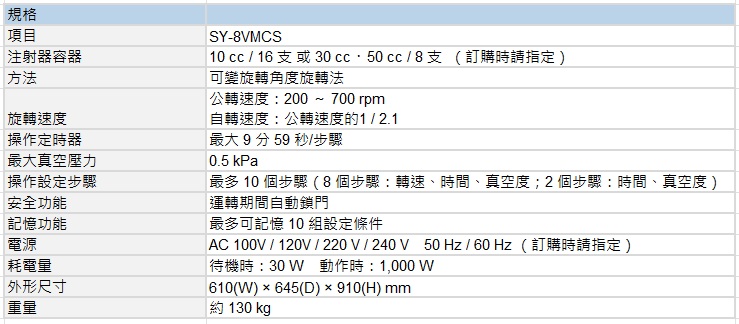 針筒專用真空攪拌機SY-8VMCS